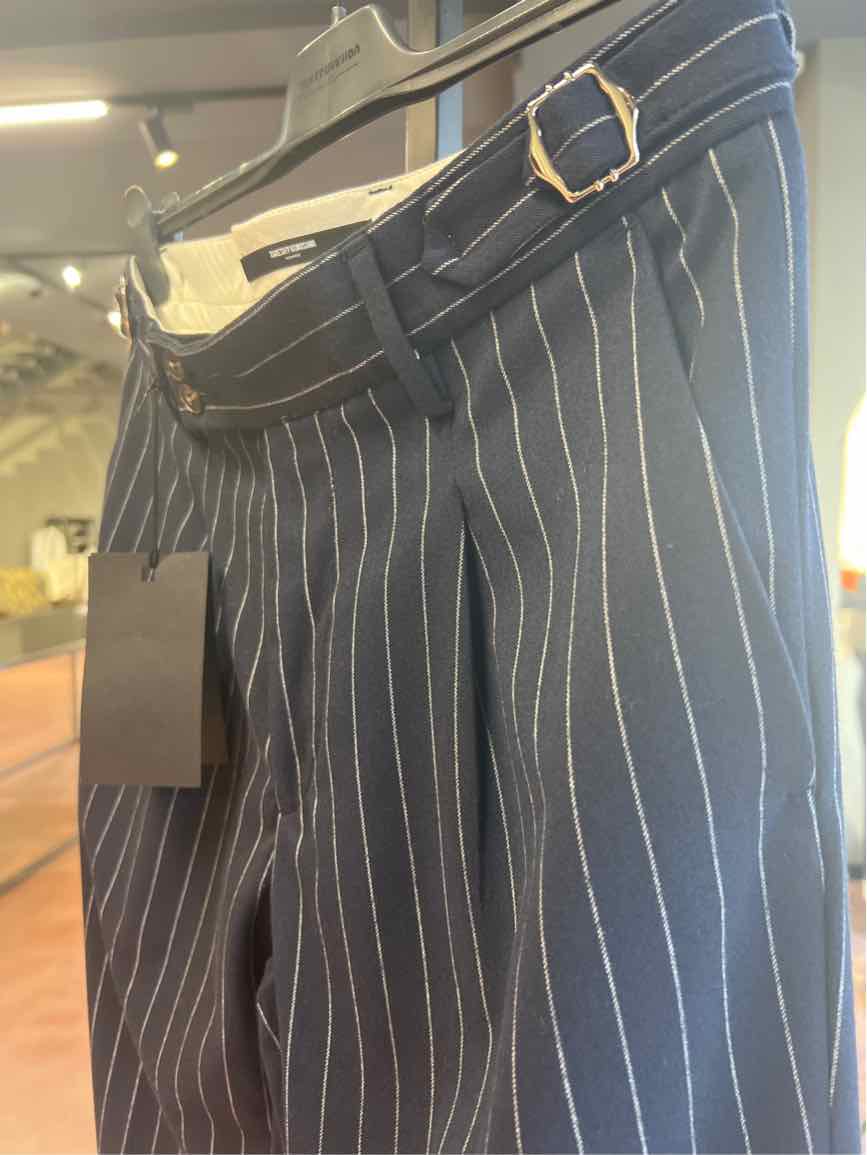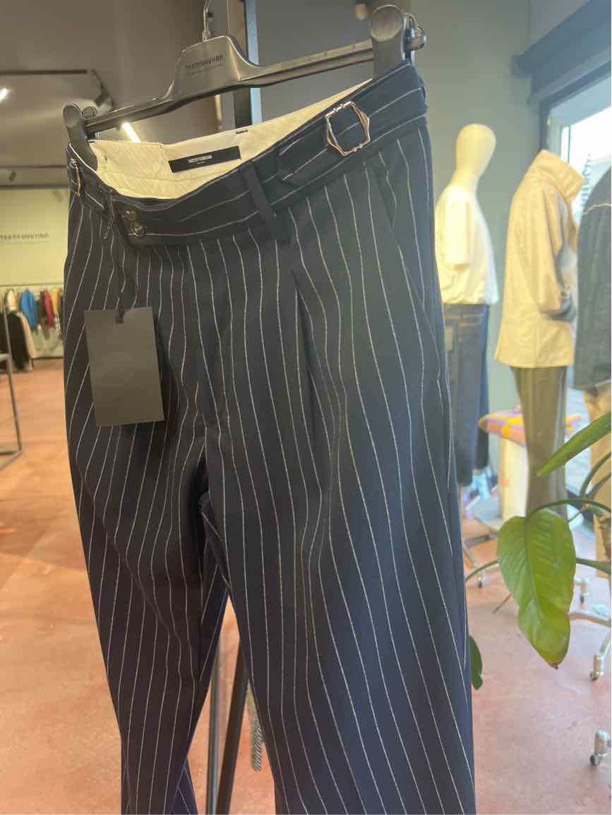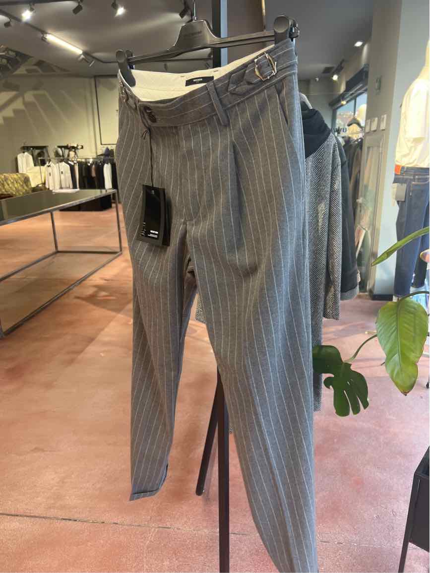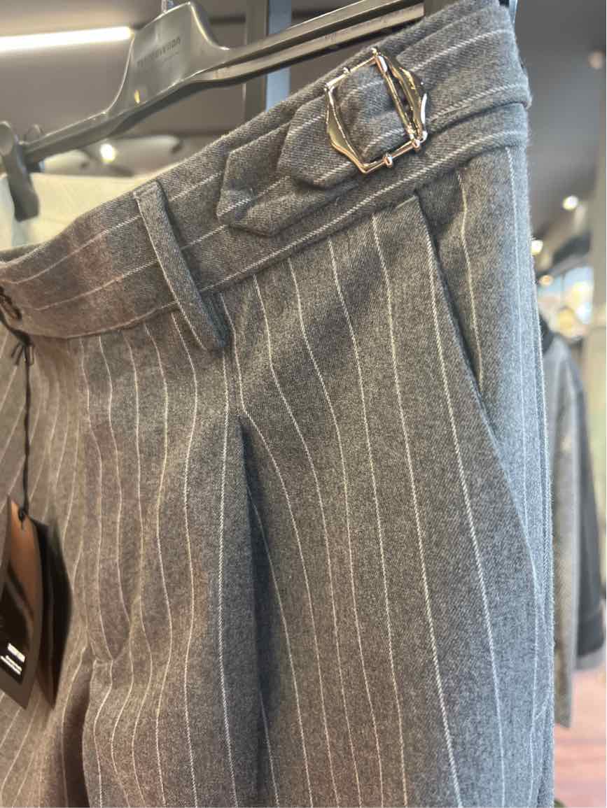 Pantalone Gessato Con Fibbia 53%pl 34%vi 10%wo 3%ea made in italy
